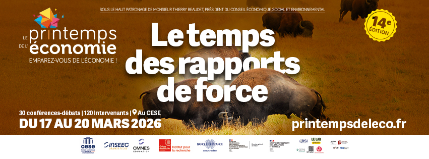 Le 17 mars à 17h45, en lien avec nos programmes de terminale, la session APSES au Printemps de l’Economie (au CESE, métro Iéna, Paris 16e) sera consacrée à l’état des lieux des rapports de force au travail, avec comme intervenant.e.s les sociologues Nicolas Renahy, Haude Rivoal et Marc Loriol, et à la modération Catherine André d’Alternatives Economiques. Toutes les information pour amener vos classes sont ici, il s’agit de la session numéro 8 !